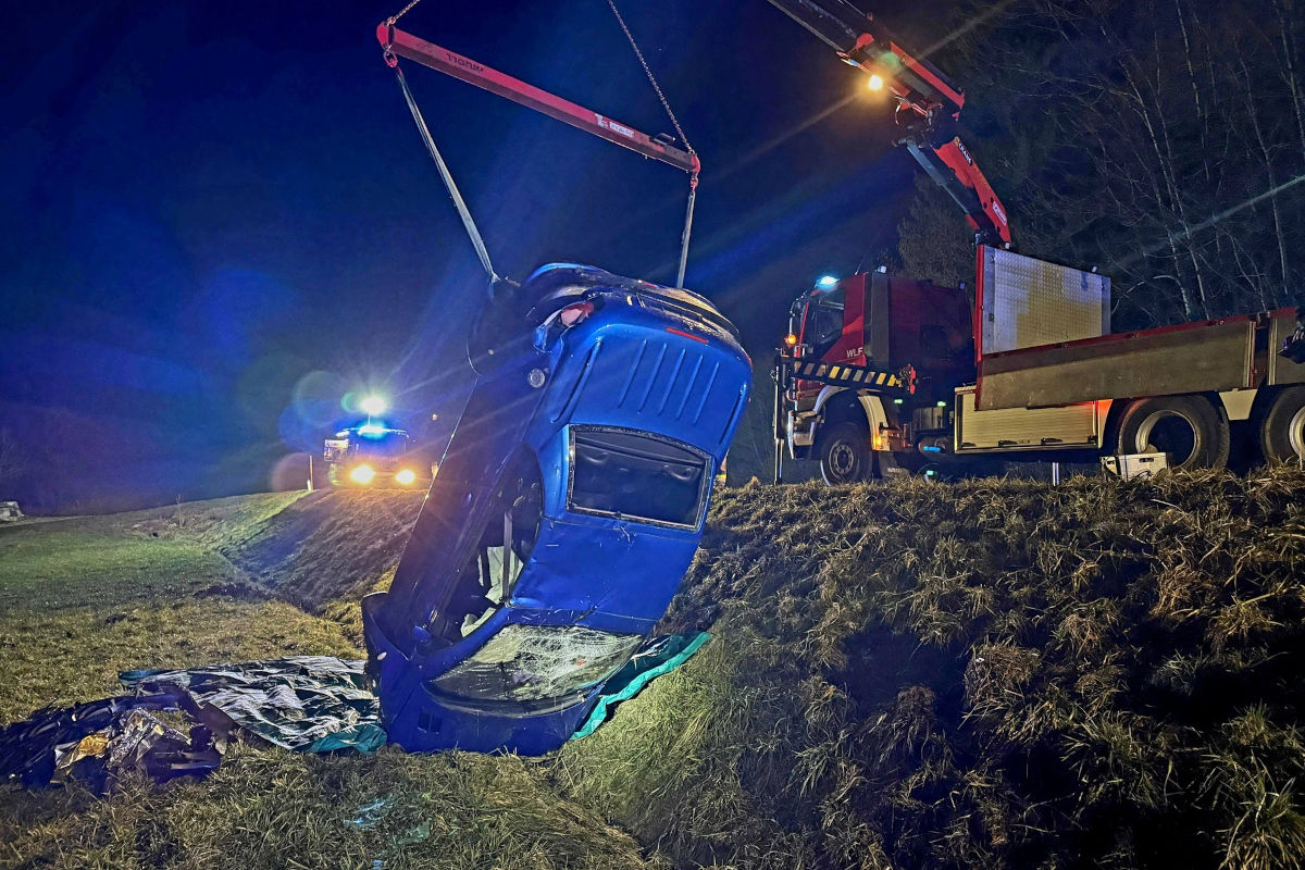 Am Abend des 5. März verunfallte eine 23-jährige Lenkerin auf der Lobmingstraße bei Voitsberg. In einer Kurve geriet der Pkw ins Schleudern, kam von der Fahrbahn ab und überschlug sich im Straßengraben. Drei der vier Insassen wurden verletzt.