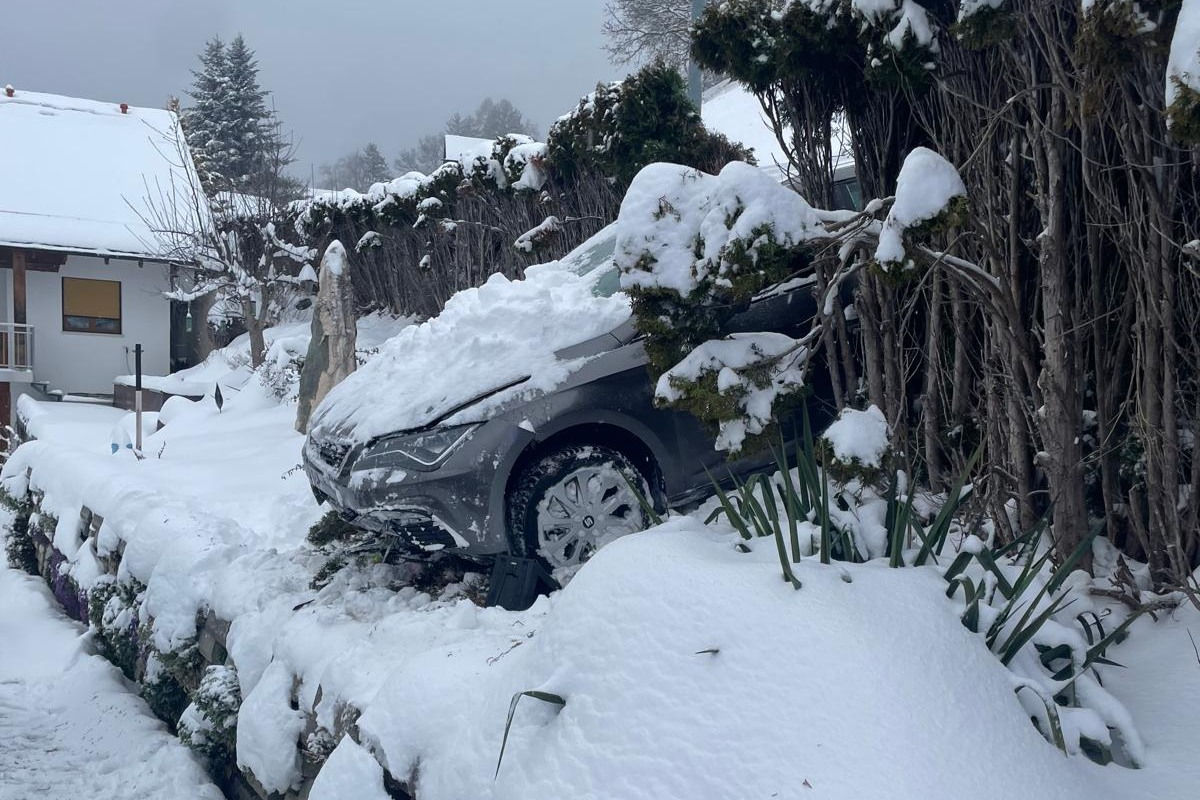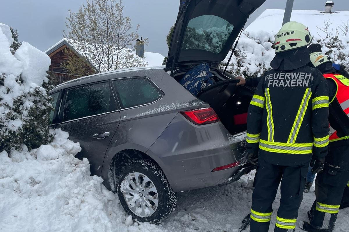 Heute Morgen, 27. März 2026, kam es bei Fraxern zu einem Unfall. Ein Pkw kam aufgrund winterlicher Verhältnisse von der Straße ab und stürzte einen Hang hinab.
