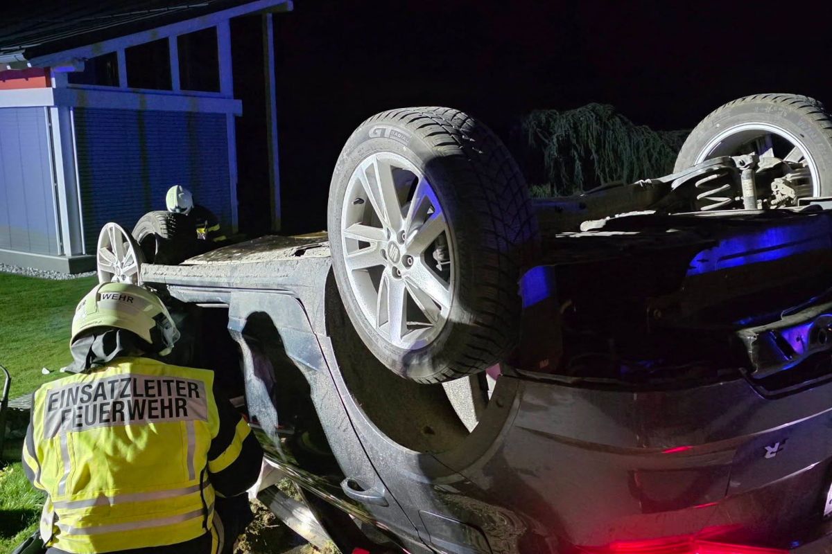 Ersten Erkenntnissen zufolge dürfte die Laderampe weder beleuchtet noch abgesichert gewesen sein. In weiterer Folge übersah der 77-jährige Pkw-Lenker den Lkw und fuhr ungebremst über Rampe. Der Pkw kam auf einem angrenzenden Grundstück am Dach liegend zum Stillstand.