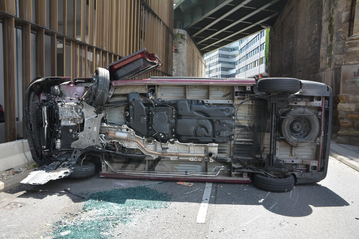 Auf der Spittelauer Lände verlor der 22-jährige Lenker (Sta.: Saudi-Arabien) eines Minivans gestern Mittag die Kontrolle über sein Fahrzeug, das von der Fahrspur abkam, mit der Betonleitwand kollidierte und in weiterer Folge gegen die Fassade eines Parkhauses geschleudert wurde. Das Fahrzeug kippte und kam schließlich auf der rechten Fahrzeugseite zum Liegen.
