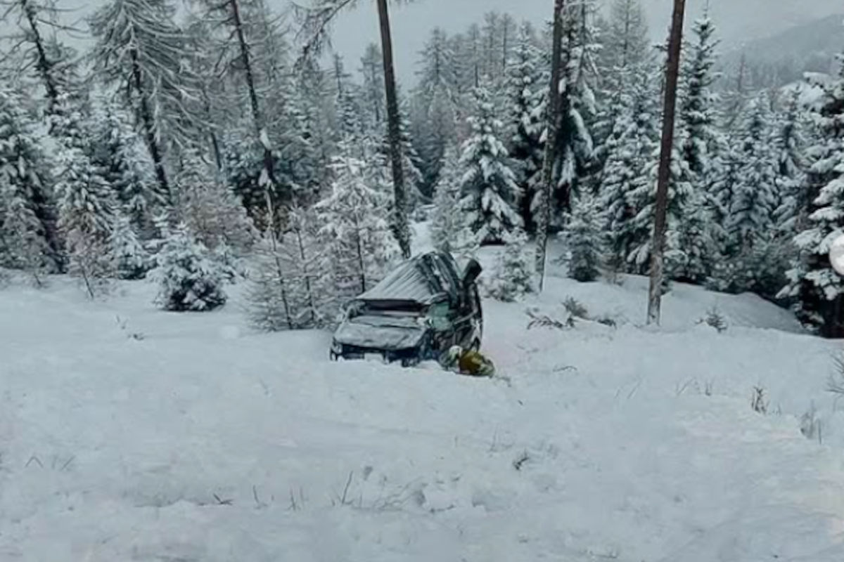 stürzte in Folge etwa 30m durch steiles Gelände ab. Am Fahrzeug des deutschen StA waren zum Unfallzeitpunkt keine Schneeketten montiert.