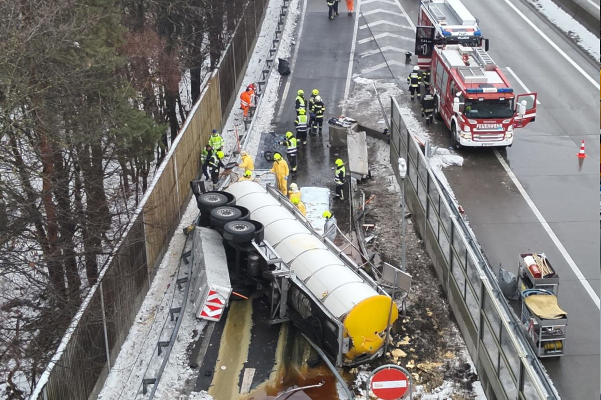Am Montag, 26. Jänner 2026, kam es am Morgen auf der A2 bei Wernberg zu einem Unfall mit einem Tankwagen. Der mit Speiseöl beladene Auflieger kippte um, dabei liefen große Mengen Öl aus.