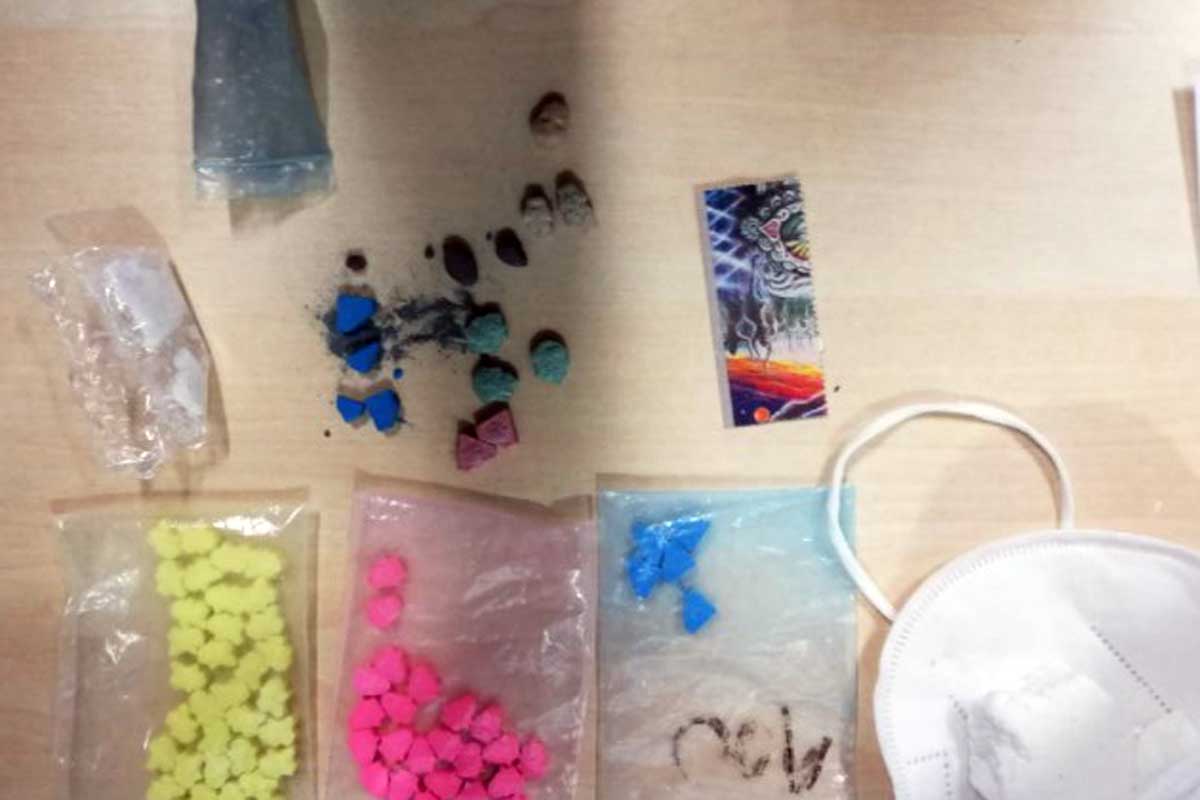 Bei der Durchsuchung der Tasche wurden ca. 70 Ecstasy Tabletten, 35 LSD Strips und über 50 Gramm Amphetamine vorgefunden und sichergestellt.