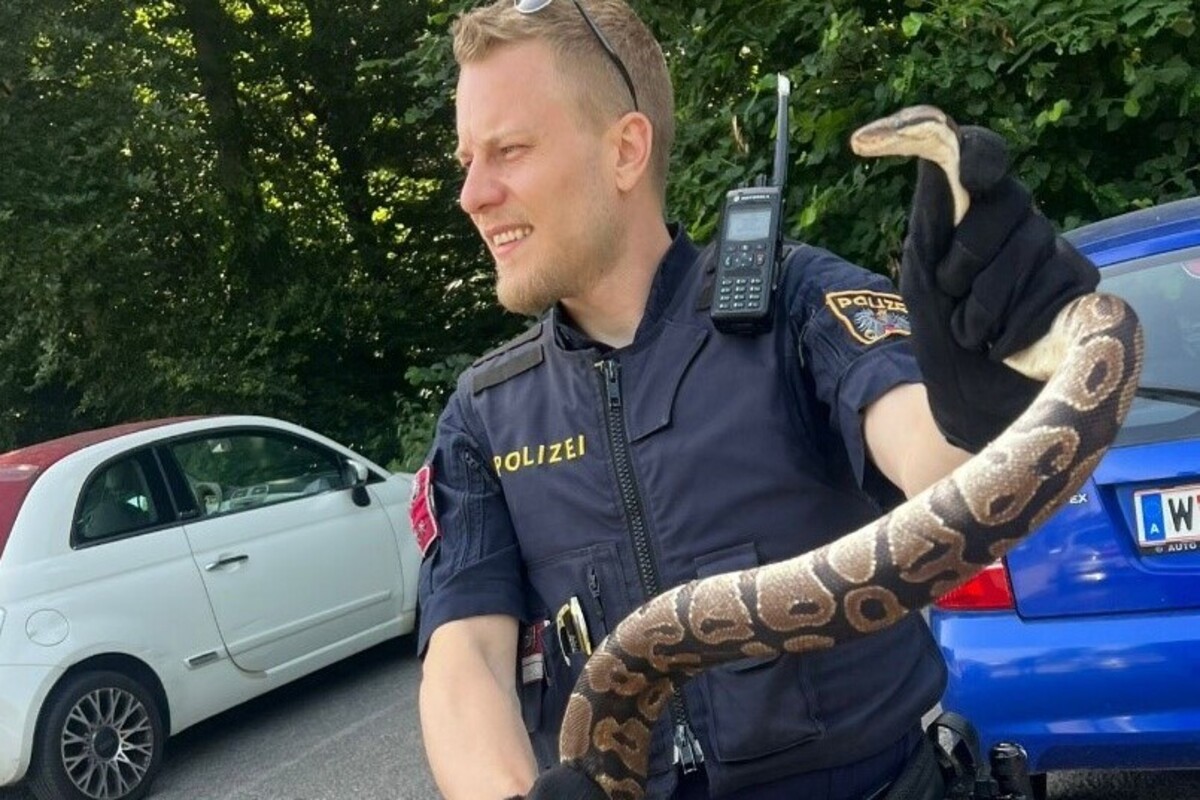 Im Bereich des Schottenhofs in Wien - Hernals machten aufmerksame Beamte der Polizeiinspektion Halirschgasse eine ungewöhnliche Entdeckung in einem Waldstück neben einem Parkplatz. Den Beamten fiel eine Schlange auf, die im dortigen Gebüsch lag und augenscheinlich keine heimische Art war. Nach kurzer Recherche wurde festgestellt, dass es sich um einen Königspython handelte.