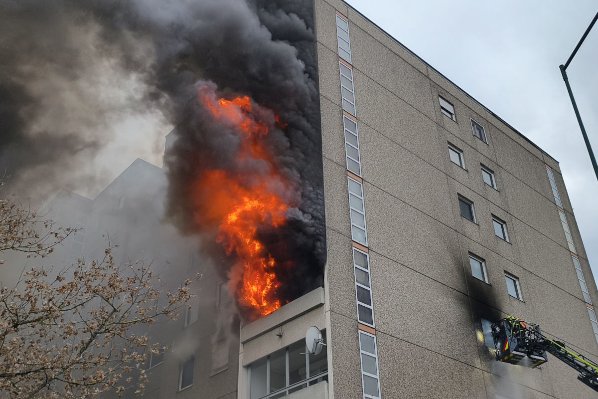 Die Flammen griffen auf die darüberliegende Wohnung über. (Bildquelle: Freiwillige Feuerwehr der Stadt Mödling)