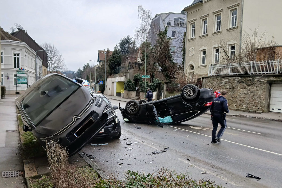 Am Donnerstag, 5. Februar 2026, kam es in Klosterneuburg auf der B14 zu einem Unfall nach Sekundenschlaf. Der Pkw kollidierte mit parkenden Autos und blieb auf dem Dach liegen.