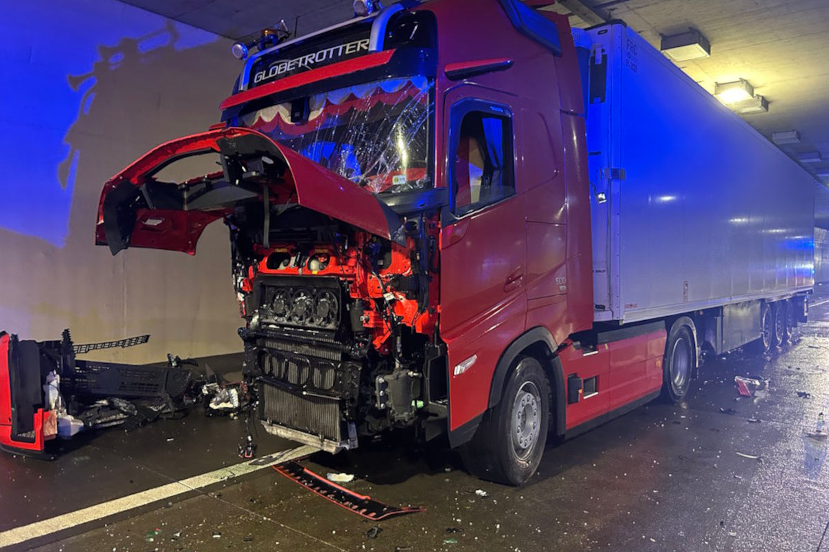 Heute Nacht, 17. Februar 2026 kam es im Tunnel Eibesbrunn auf der A5 zu einem Lkw-Unfall. Ein Sattelzug prallte gegen die Tunnelwand. Der Tunnel war zeitweise gesperrt. Das schwer beschädigte Fahrzeug wurde geborgen.
