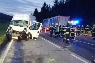 Aus bisher ungeklärter Ursache kollidierte Sonntagfrüh, 13. Juni 2021, ein nahezu voll besetzter Kleinbus mit dem Anhänger eines Lkw. Zwei Insassen mussten ins Krankenhaus eingeliefert werden.