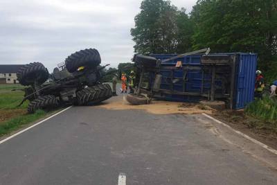 Ein Lkw geriet Samstagfrüh, 22. Mai 2021, bei einem Ausweichmanöver auf das Bankett und kippte in den Straßengraben. Verletzt wurde niemand.