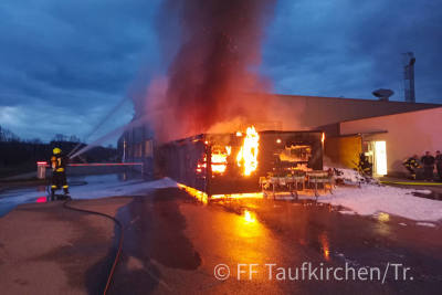 Am 16. April 2022 brach nach 4:30 Uhr in der Lagerhalle eines Betriebes ist Taufkirchen an der Trattnach aus noch unbekannter Ursache ein Brand aus.