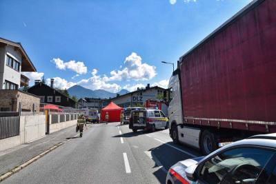 Montagnachmittag, 30. August 2021, kippte ein rund 50 Tonnen schwerer Sattelzug samt Beladung auf der B68 um. Die aufwendige Bergung des Schwertransporters dürfte bis Mitternacht andauern.
