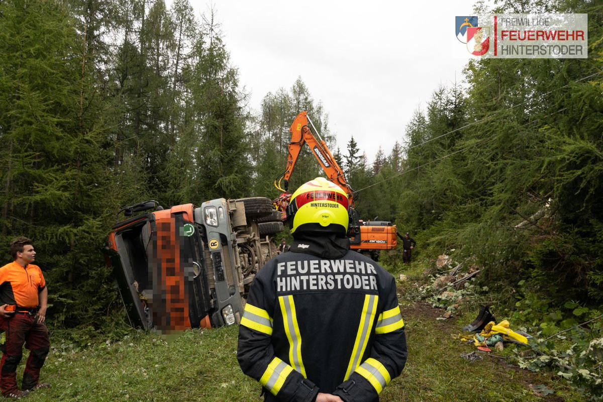Lkw über Böschung hinuntergestürzt (Bildquelle: Freiwillige Feuerwehr Hinterstoder)