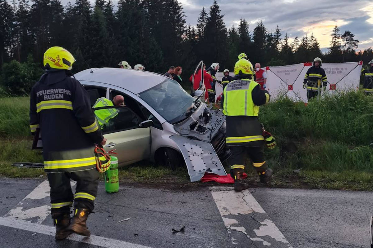 Eine 73 Jahre alte Frau aus Klagenfurt lenkte am 25.05.2022 gegen 20:15 Uhr ihren PKW auf der Rudener Landesstraße, L127, in Richtung Ruden. An der Kreuzung mit der Lippitzbacher Bundesstraße, B80a, prallte sie seitlich gegen einen auf der B80a fahrenden PKW, gelenkt von einem 39 Jahre alten Mann aus Bosnien und Herzegowina.