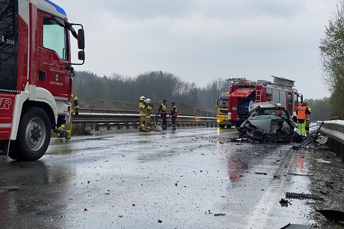 Durch den Aufprall wurde der PKW um die eigene Achse gedreht und schlitterte fahrerseitig gegen die Leitschiene. Dadurch wurde der Autolenker eingeklemmt und verstarb noch an der Unfallstelle.