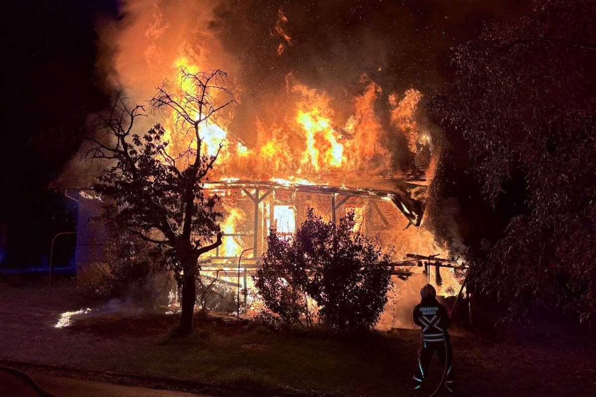 Am 27.09.2025 um ca. 02.15 Uhr geriet auf bislang unbekannte Art und Weise ein leerstehendes Wohnhaus in Gaißau in Brand.