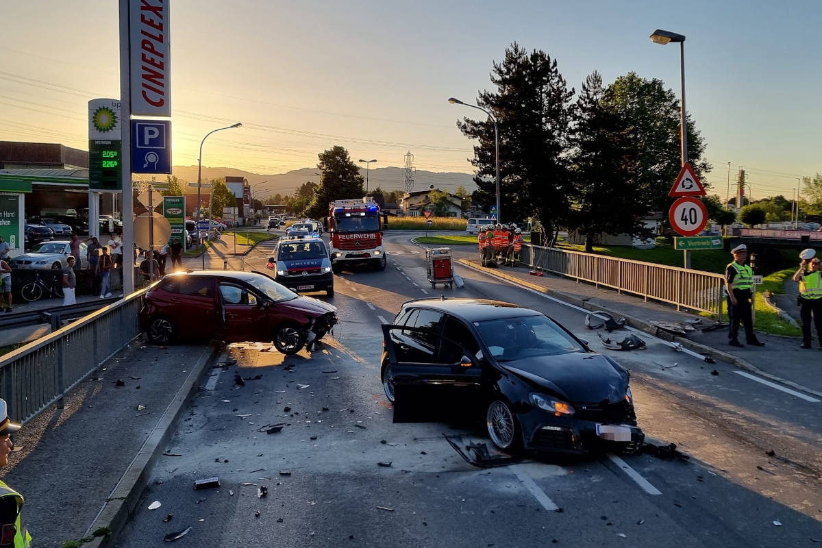 Gleichzeitig fuhr ein 23-jähriger Mann mit seinem PKW vom Kreisverkehr kommend in die entgegengesetzte Richtung. Auf Höhe der Emsbachbrücke beabsichtigte der 18-Jährige nach links zum dortigen Kino einzubiegen und übersah dabei den entgegenkommenden PKW des 23-Jährigen. Es kam zum Frontalzusammenstoß der beiden Fahrzeuge wobei sowohl die beiden Lenker als auch jeweils eine Mitfahrerin und ein Mitfahrer unbestimmten Grades verletzt wurden. An beiden Fahrzeugen entstand Totalschaden. Ein mit beiden Lenkern durchgeführter Alkotest verlief negativ.