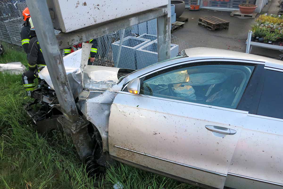 Leonding - Drei Jugendliche krachen nach Überholmanöver mit Reklametafel