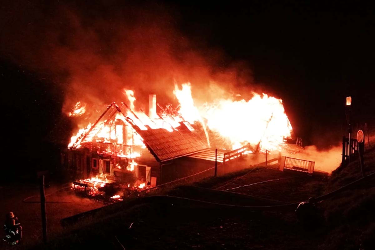 Aus bisher unbekannter Ursache brach am 3 Juli 2021 gegen 01:45 Uhr auf der Millstätter Alpe, Gemeinde Millstatt am See, Bezirk Spittal an der Drau im Obergeschoss des Nebengebäudes einer Almhütte ein Brand aus.