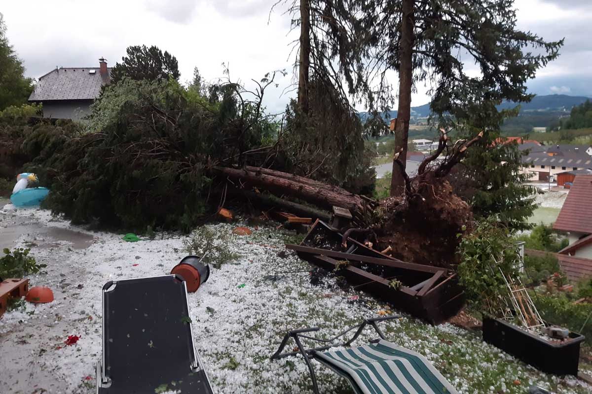 Überflutete Keller, abgedeckte Dächer, zerschossenen Dächer und zahlreiche Wasserschäden wurde abgearbeitet.