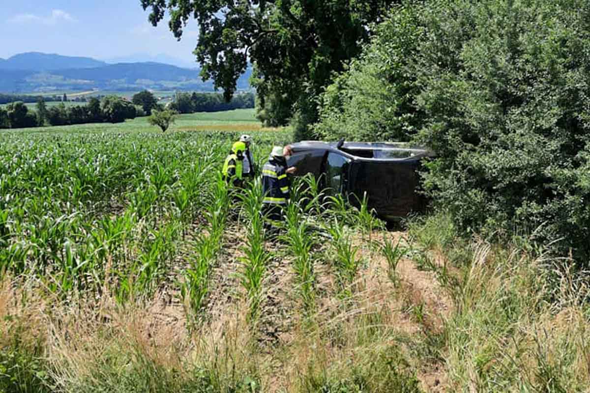 Am 29. Juni 2021 gegen 12:00 Uhr kam auf der Gemmersdorfer Landesstraße (L 140) in Paierdorf, Gd St. Andrä/Lav., Bez Wolfsberg, eine 81-jährige Pensionistin aus dem Bezirk Wolfsberg - auf Grund gesundheitlicher Probleme - mit ihrem PKW rechts von der Fahrbahn ab und befuhr einen Maisacker.