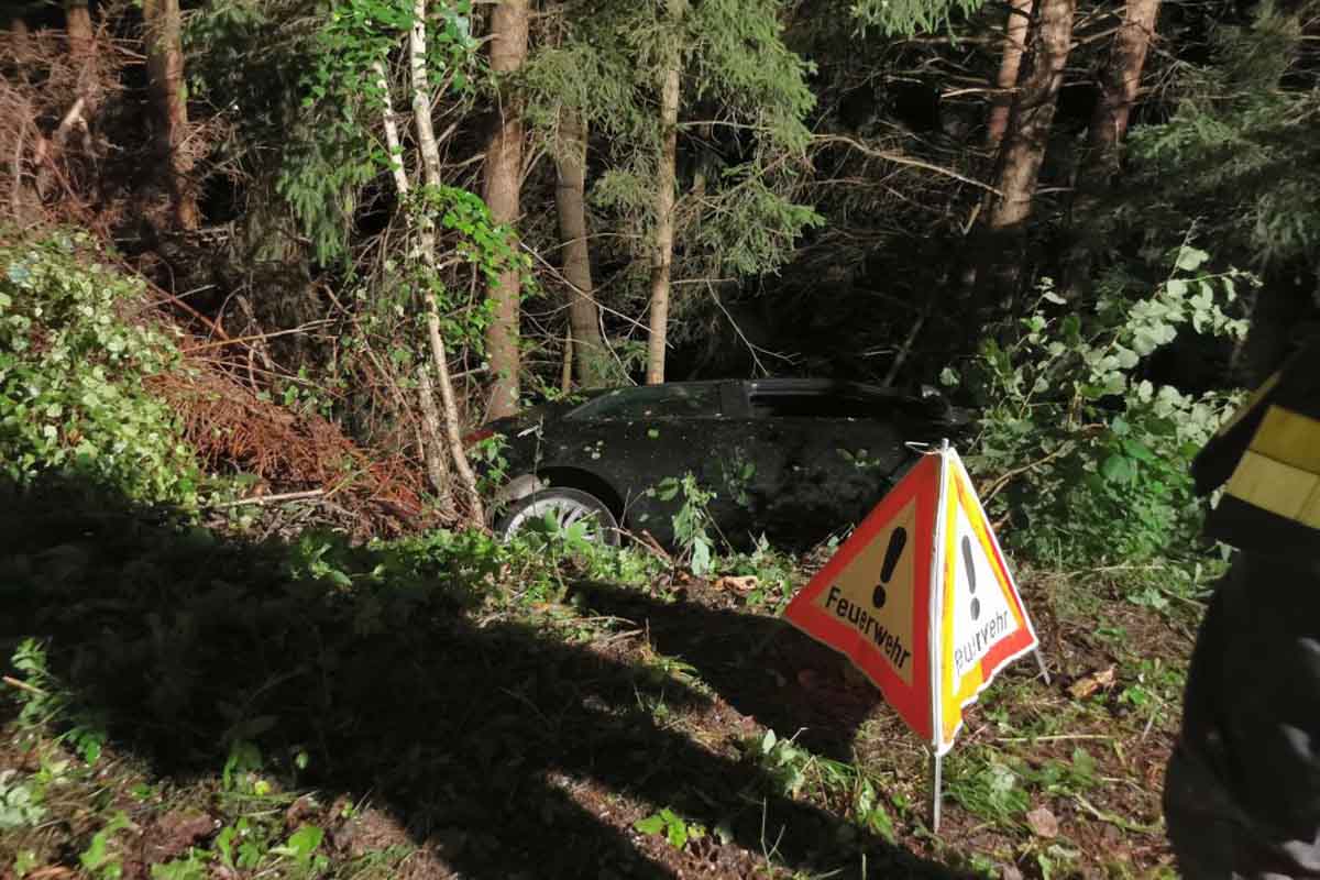 Auf der Zufahrtsstraße Richtung Hochberger kam gestern ein PKW von der Fahrbahn ab und wurde im steilen Gelände von mehreren Bäumen abgefangen.