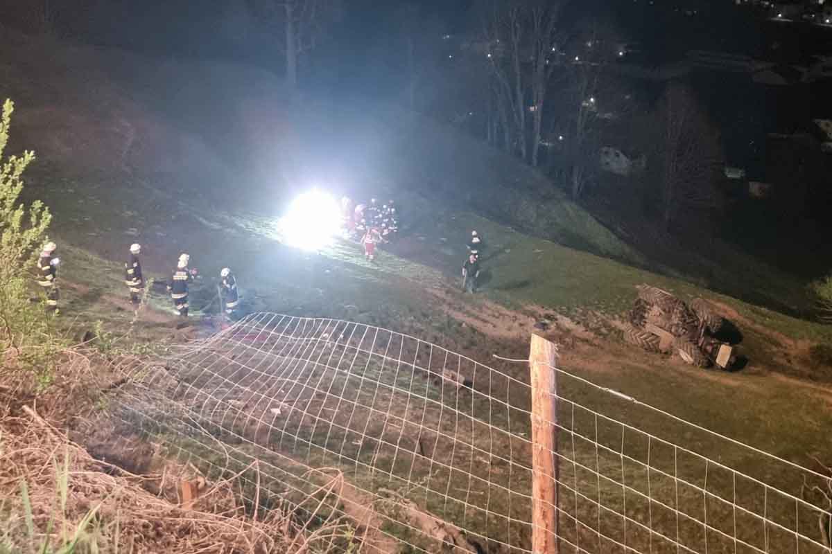 Aus unbekannter Ursache kam ein Fahrer mit dem Traktor von der Fahrbahn ab und stürzte eine steile Böschung hinunter. Der Traktor überschlug sich mehrmals und kam seitlich zum Stillstand.