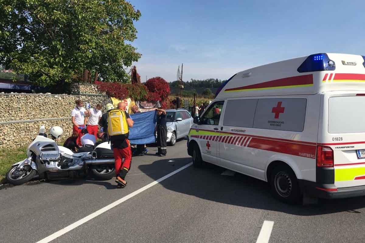 Mittwochnachmittag, 15. September 2021, kollidierte eine Pkw-Lenkerin (47) mit dem Lenker eines Motorrades (65). Dabei wurde der Mann schwer verletzt.