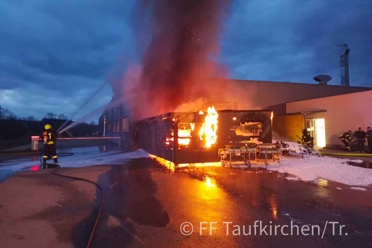 Am 16. April 2022 brach nach 4:30 Uhr in der Lagerhalle eines Betriebes ist Taufkirchen an der Trattnach aus noch unbekannter Ursache ein Brand aus.