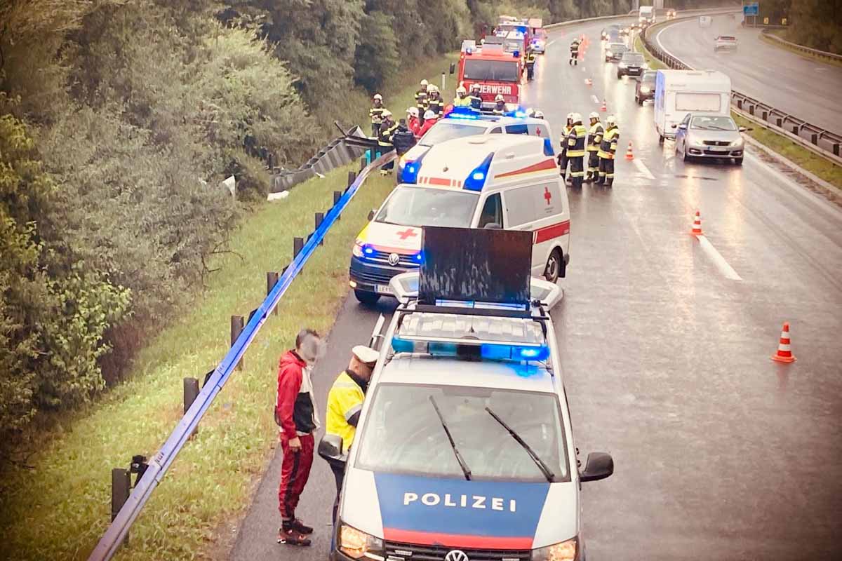 Unfall auf der A9 in Traboch - PKW landete nach einem Überschlag im Straßengraben