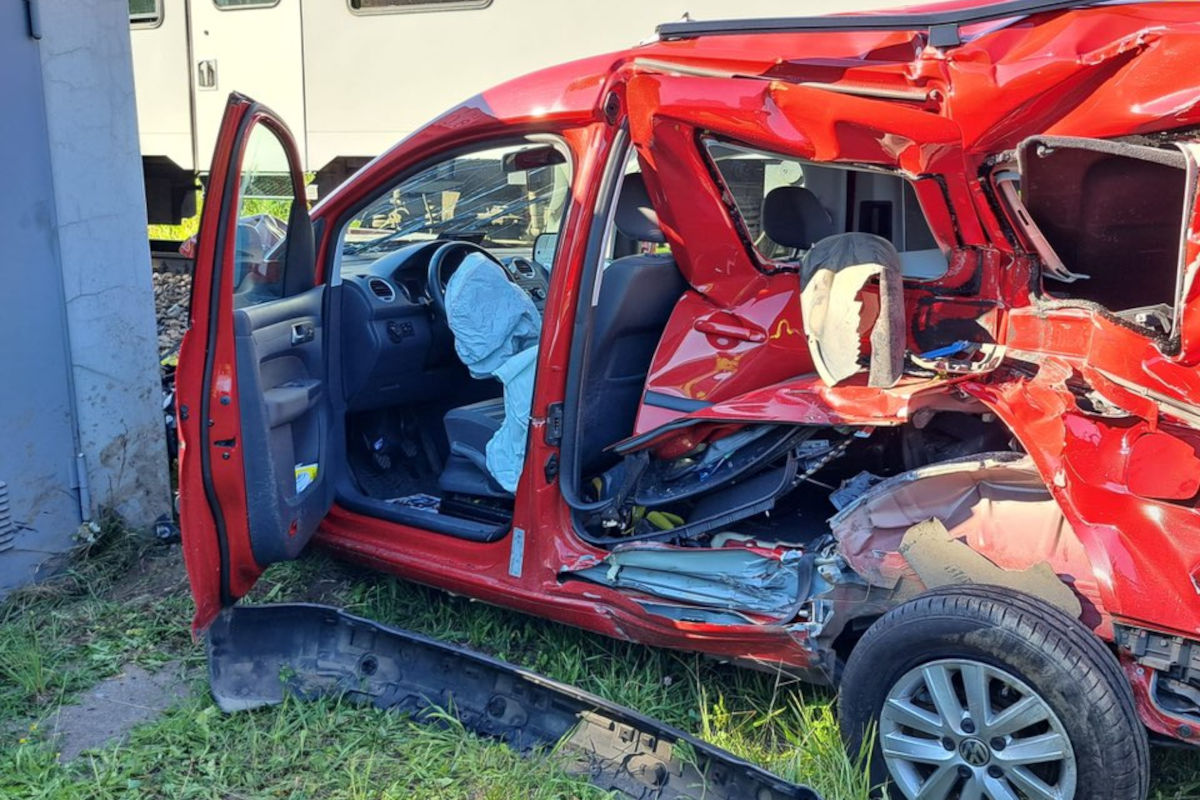 Eine Kollision mit dem auf den Gleiskörpern stehenden Fahrzeug konnte jedoch nicht verhindert werden und der Zug rammte den PKW.
