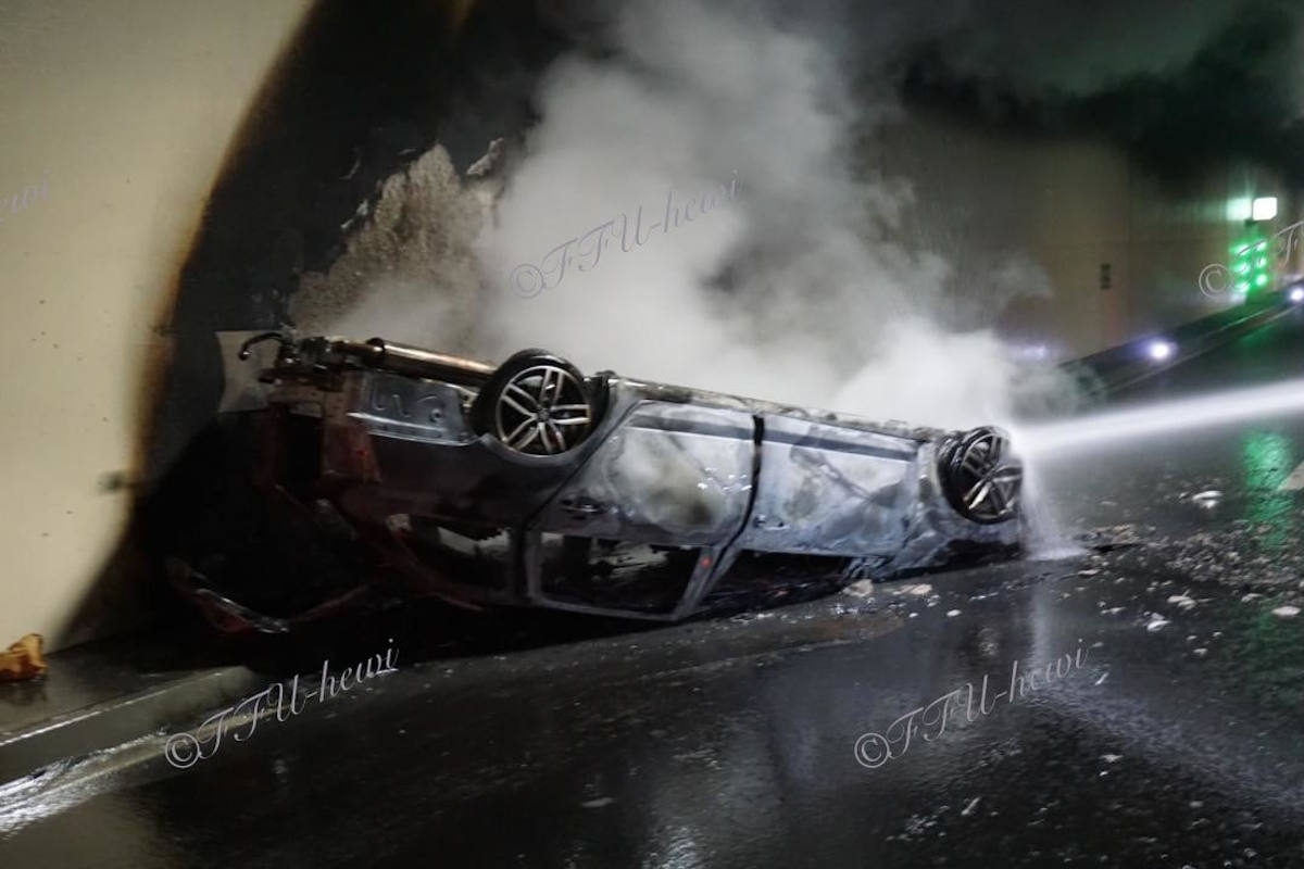 Die beiden Insassen konnten sich selbst aus dem Wrack befreien. Unmittelbar hinter dem Pkw des 18-Jährigen fuhr ein 28-Jähriger aus dem Bezirk Murau mit seinem Pkw, ebenfalls mit offenbar überhöhter Geschwindigkeit. Um eine Kollision mit den beiden Unfallfahrzeugen vor ihm zu vermeiden, bremste der 28-Jährige sein Fahrzeug stark ab und lenkte dieses gegen die Tunnelwand. Der 28-Jährige wurde leicht verletzt und vom Rettungsdienst in das LKH Judenburg eingeliefert. Alle anderen Unfallbeteiligten gaben an, nicht verletzt worden zu sein.Unmittelbar nach dem Unfallgeschehen begann der Pkw des 18-Jährigen zu brennen und stand schlussendlich in Vollbrand.