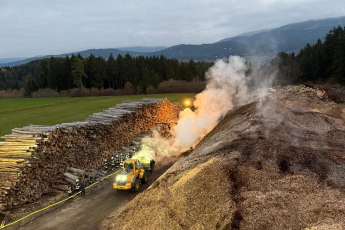 Am 9.11.2025 gegen 04:00 Uhr kam es in einem Hackschnitzellager im Bezirk Villach zu einem Brandgeschehen durch Selbstentzündung. Die Hackschnitzel sind dort unter freiem Himmel gelagert, wobei ein Teil des ca. 40.000 Kubikmeter umfassenden Lagers in Brand geriet.
