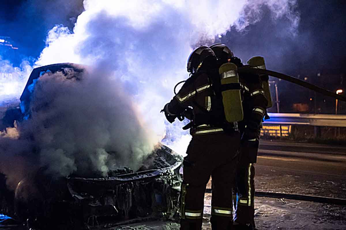 Da sich ein Teil der Mannschaft zum Zeitpunkt der Alarmierung im Feuerwehrhaus aufhielt, rückten bereits nach wenigen Minuten drei Fahrzeuge zum Einsatzort aus. Ein Kleinwagen hatte während der Fahrt aus ungeklärter Ursache plötzlich zu brennen begonnen und kam mitten auf der SCS-Brücke zum stehen.