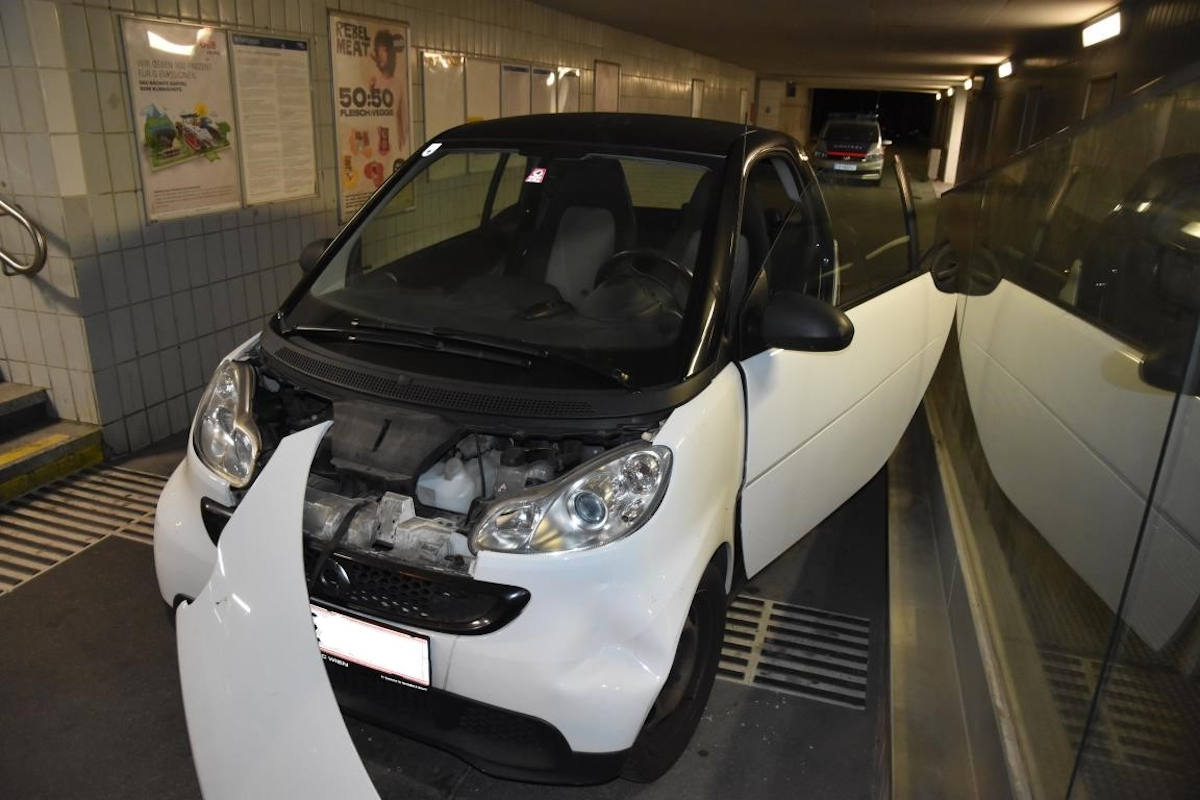 Als die Funkwagenbesatzung eine Lenker-und Fahrzeugkontrolle durchführen wollte, beschleunigte der Lenker und versuchte zu flüchten. Auf Höhe der Lastenstraße fuhr er mit dem Pkw in die dortige Personenunterführung der Schnellbahn, wo das Fahrzeug mit dem Stiegenaufgang touchierte und zum Stillstand kam. Der 15-jährige Lenker (Stbg: Russische Föderation) versuchte anschließend zu Fuß zu flüchten, konnte allerdings am Gelände einer nahegelegenen Volksschule von einer weiteren Funkwagenbesatzung angehalten werden.