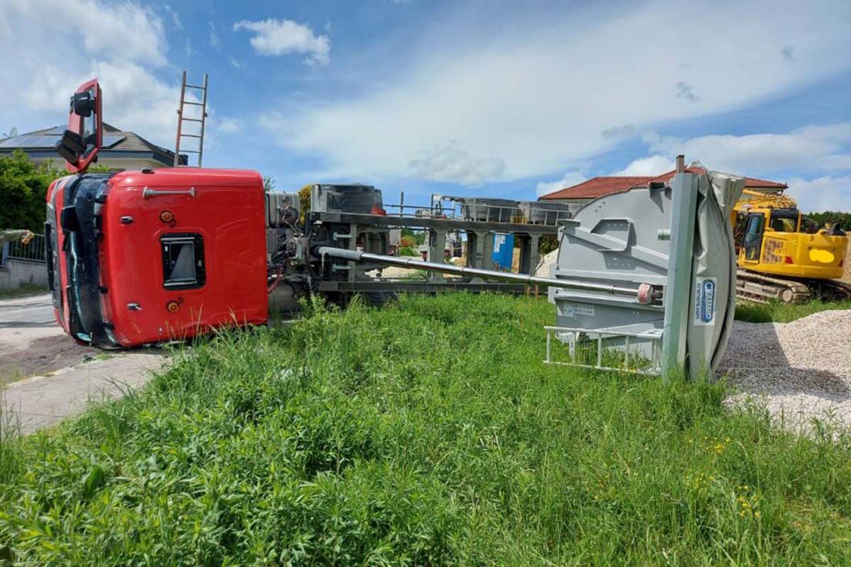 Wiesen - LKW stürzt um - Fahrer verletzt!