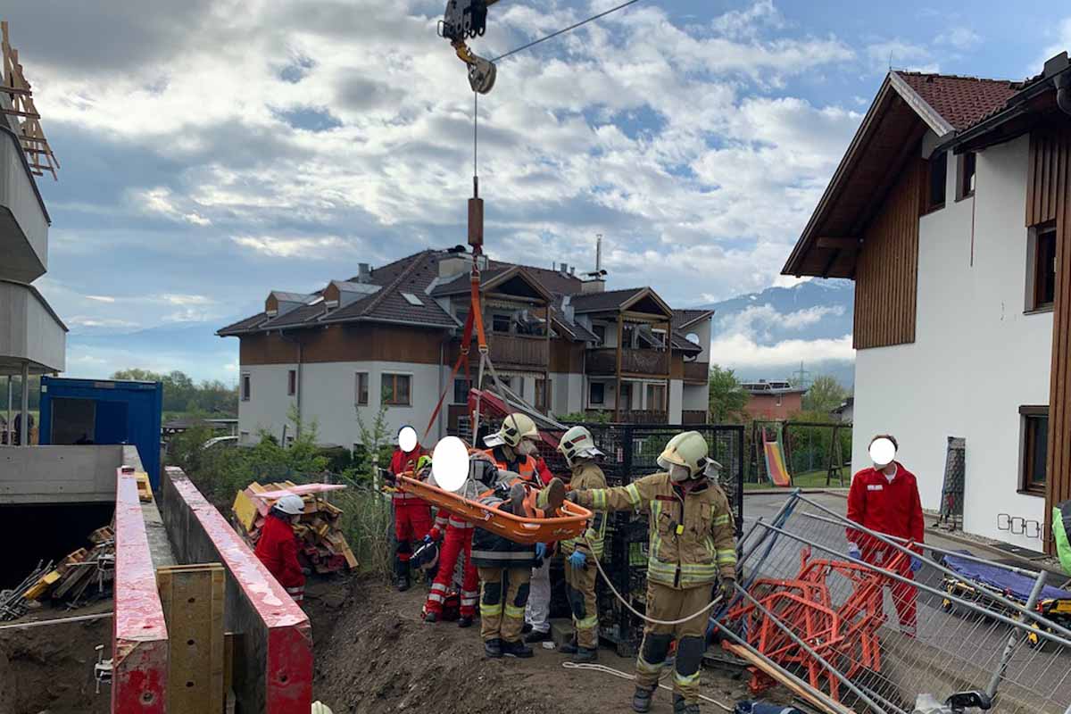 Bei Bauarbeiten stürzte ein Arbeiter von einer Schalungswand und konnte, aufgrund seiner Verletzungen die Baugrube nicht mehr selbstständig verlassen